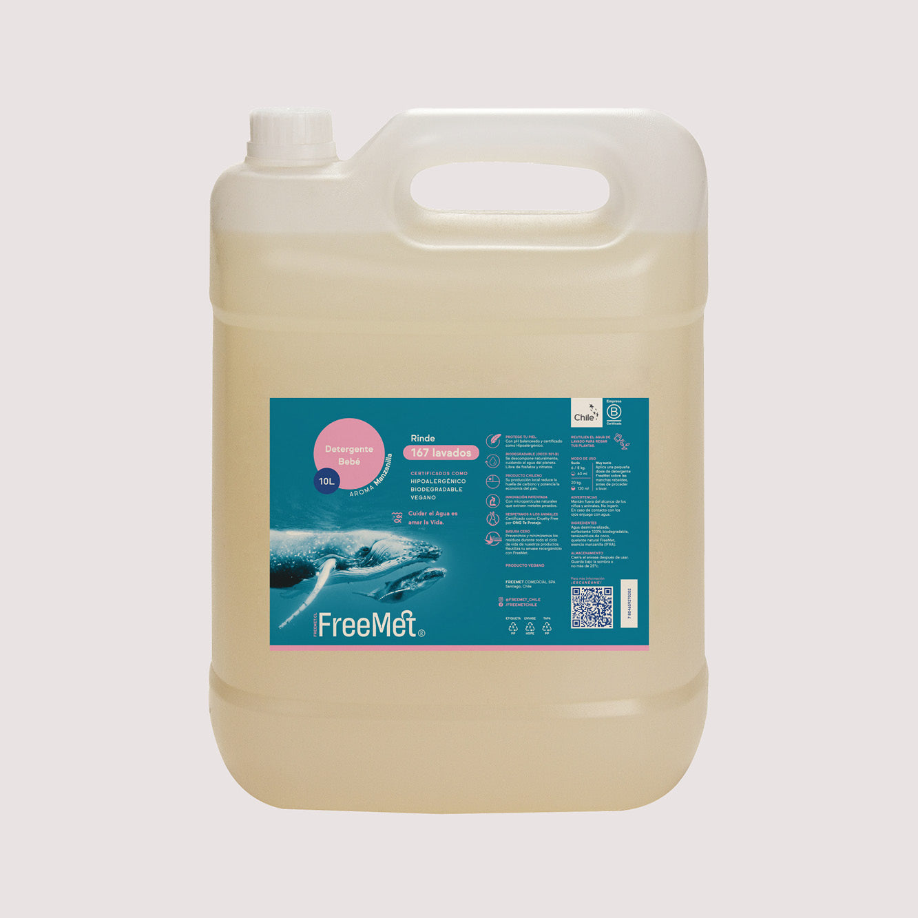 El detergente FreeMet es 100% Biodegradable, Hipoalergénico ¡¡y deja la ropa impecable!!