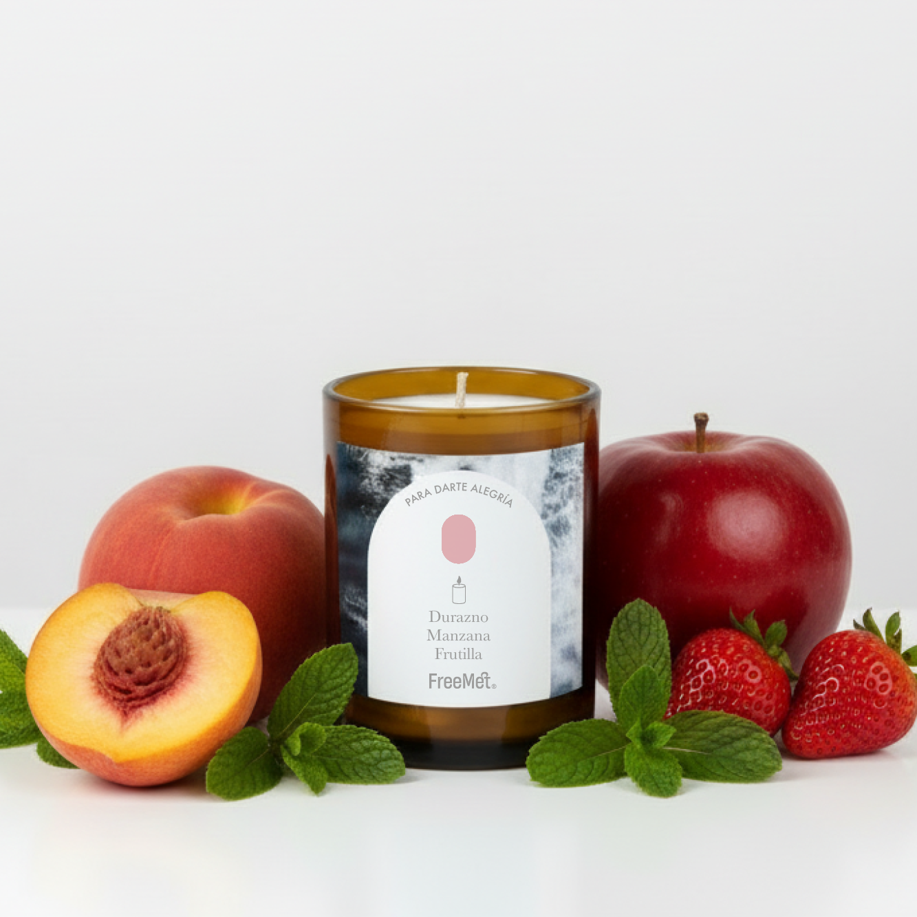Vela: Durazno · Manzana · Frutilla — Alegría