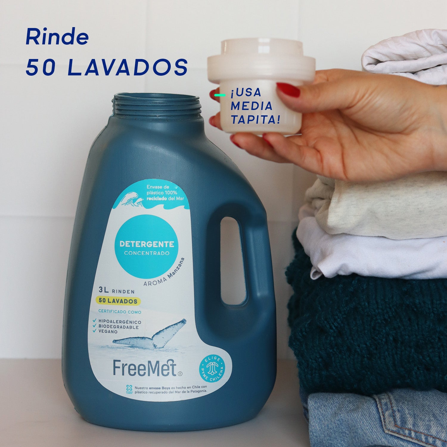 El detergente FreeMet es 100% Biodegradable, Hipoalergénico ¡y deja la ropa impecable!